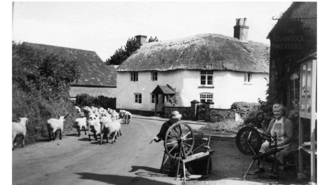 In the Old Forge at Plainsfield,  Over Stowey two spinners, dyers and weavers of wool, Norah Biddulph and Gladys Dickson set up in business together forming The Quantock Weavers.