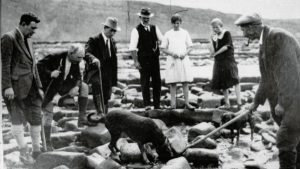 Kilve Beach is also associated with rural traditions, in this case eel glatting. People hunted eels at low tide, using dogs to sniff them out under stones, and large sticks to lift the stones and uncover the sometimes giant eels underneath. It was a great social event in the village when this happened.
